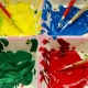 Nach dem ich die Grundierung auf das Bild gebracht habe , sind die ersten Farben auf dem Bild zu erblicken . Man kann und darf mit verschiedenen Werkzeugen arbeiten alles ist erlaubt . Ich entschied mich für den blauen Schwamm , in dem ich nun das Spiel der Farben beginne .